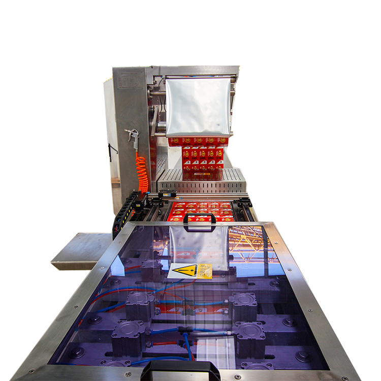 拉伸膜真空包裝機上、下工作室通過硅膠密封墊完全密封后,加熱板對底膜加熱至設定的成型溫度,然后下工作室抽真空。已加熱的底膜受拉伸,沉入成型模成為與被包產品對應的幾何形狀。使用的底膜質量,材料和厚度、硬度不同,成型溫度也不同,合理的成型溫度由試驗確定。RZ320成型的大拉伸深度可達130mm.工作時通過下室內墊板調整所需的拉深深度。根據用戶要求,我們也可以把成型室和加熱板設計成適合使用硬底膜和半硬底膜的成型要求。