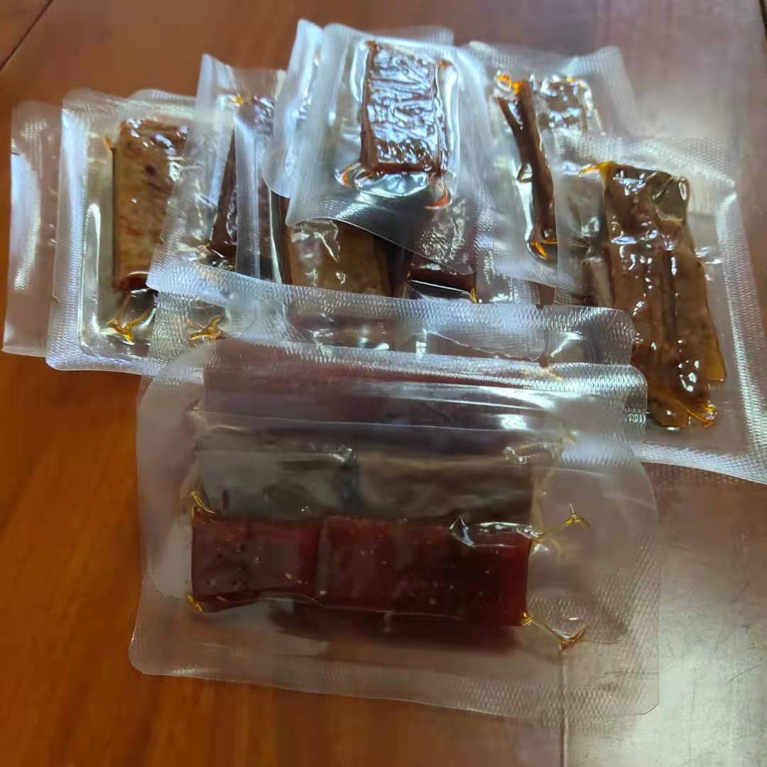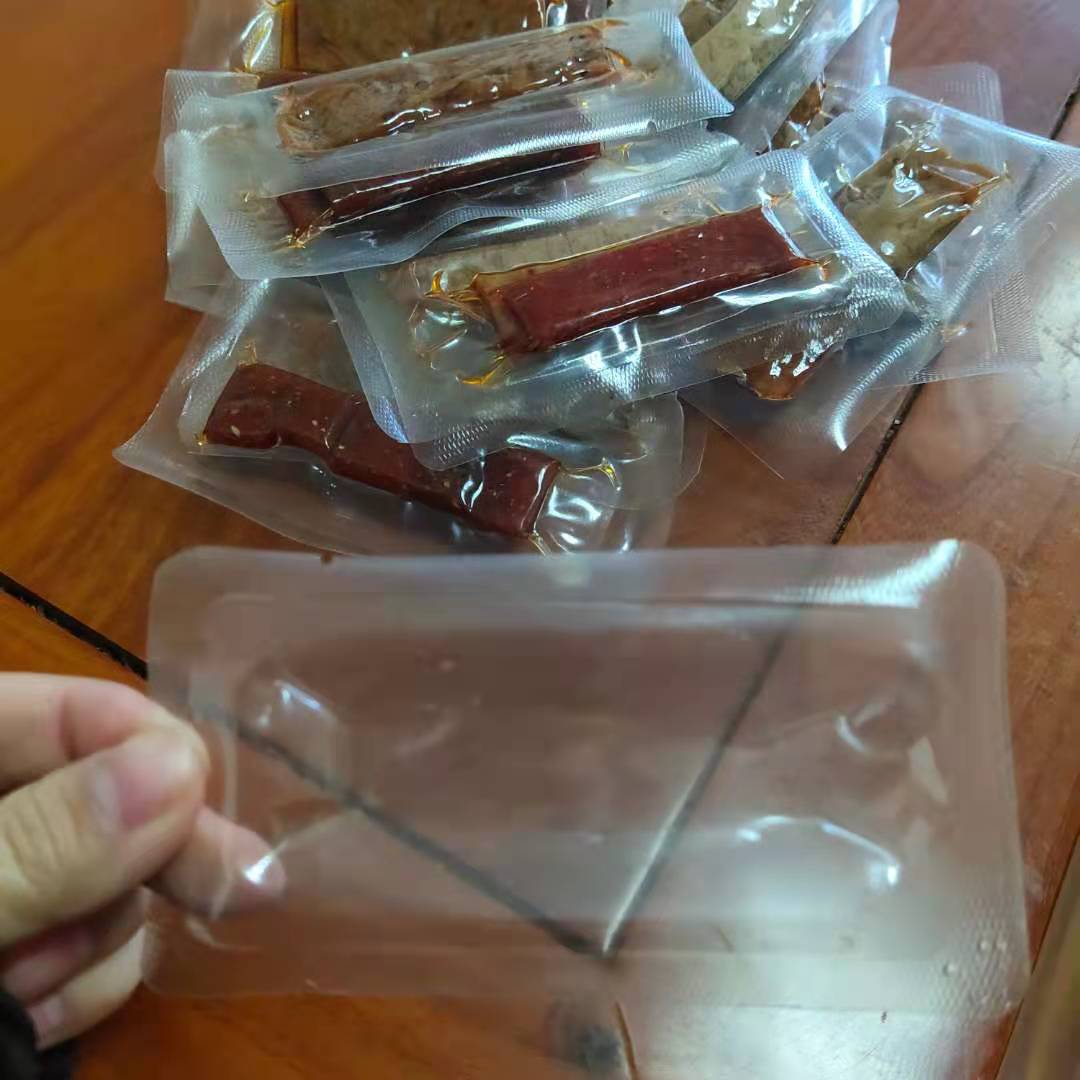 昨天有幾個客戶來公司參觀我們的全自動拉伸膜真空包裝機,正好有個客戶是做豆制品小零食的老板,拿來一些食品,想用拉伸膜真空包裝機包裝一下,看看效果如何,因為現在快銷食品甚是受歡迎,產量一直在提高,普通的設備已經不足滿足現狀的需求了,效果可以的話,要定制2臺辣條全自動拉伸膜包裝機回去用,正好實驗了一下,感覺還蠻不錯的,今天分享給大家一些圖片。