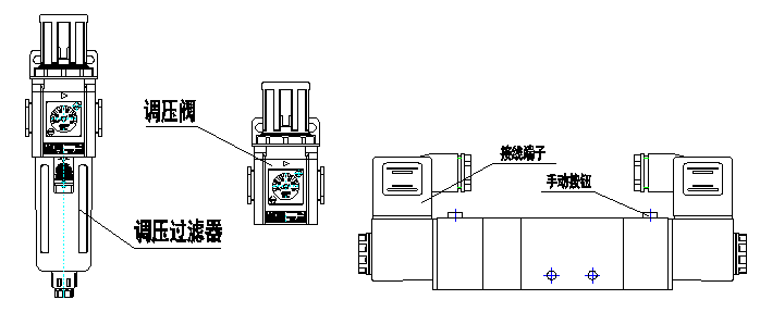 拉伸膜真空包裝機(jī)調(diào)壓過(guò)濾器/調(diào)壓閥壓力調(diào)節(jié)方法: